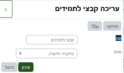 ניתן להעלות לקורס תיקיית קבצים. השימוש בתיקיה נועד לצורך אירגון - לאגד קבצים ביחד.