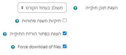 - ניתן להחליט עם תוכן התיקיה יוצג בעמוד הקורס, או בחלון נפרד.
