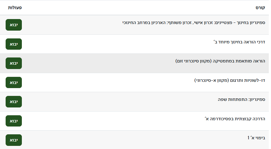 - יש לאתר את הקורס הרצוי וללחוץ על הכפתור "יבוא".
