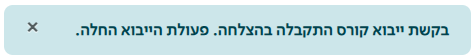 - המערתכ תחזור לקורס ותוצג הודעה: "בקשת ייבוא קורס התקבלה בהצלחה. פעולת הייבוא החלה."