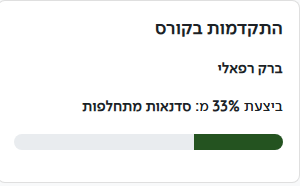 בלוק המציג סדרגל התקדמות על פי כמות הפעילויות שהשולמו בקורס.
