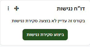 בלוק ד"ח נגישות הוא בלוק מאוד חשוב המאפשר למרצה לבדוק האם הקורס עומד בתקן הנגישות. במידה ולא דו"ח הנגישות כולל המלצות לתיקון.