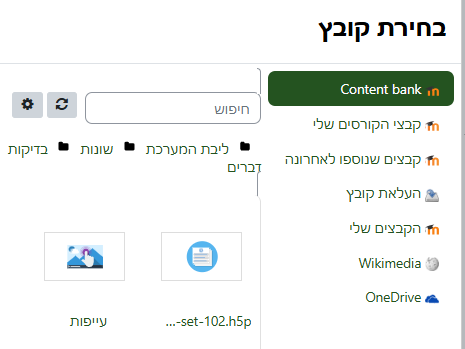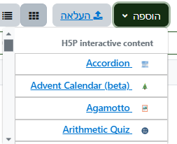 2. הוספת פעילות H5P לקורס ובחירת הפעילות שיצרתם ממאגר התכנים.