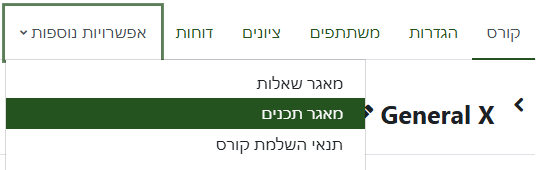 הוספת הפעילות לקורס ובחירתה ממאגר התכנים