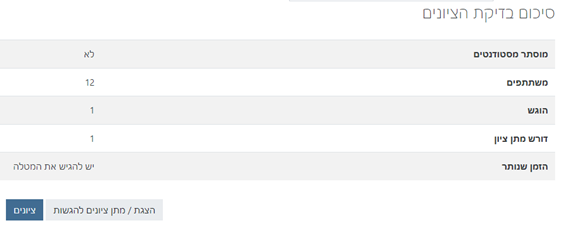 חשוב: רק לאחר בחירת הסטטוס "הניקוד זמין לסטודנט", הסטודנט יוכל לצפות בניקוד שלו.