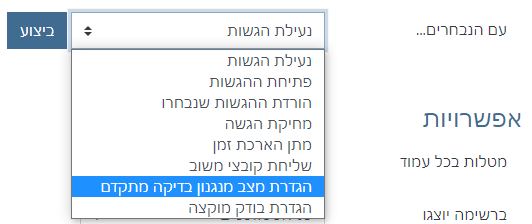 - מול הכיתוב "עם הנבחרים..." (שנמצא מתחת לטבלה) בוחרים "הגדרת מצה מנגנון בדיקה בשלבים" ואחר מקישים על כפתור "ביצוע".