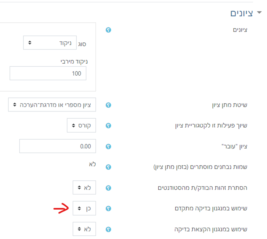 - באזור ציונים מול "שימוש במנגנון בדיקה בשלבים" בוחרים "כן".