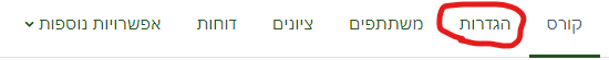 • כדי להציג את הקורס לסטודנטים, יש להיכנס להגדרות הקורס בחלק העליון ללחוץ על לשונית הגדרות הקורס