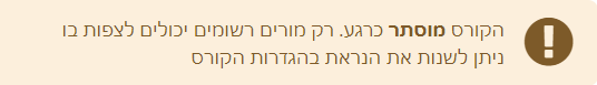 • לקורס מוסתר מופיע הכיתוב:  "הקורס מוסתר כרגע..."