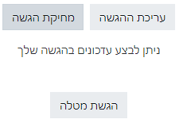 כאשר האפשרות "שליחת הגשה למתן ציון נבחרת" מגדרת "כן" יופיע כפתור נוסף: הגשת מטלה.