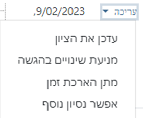 במידה ונבחר שמנגנון ההגשה החוזרת מופעל באופן ידני, יופיעו בתפריט האפשרויות: