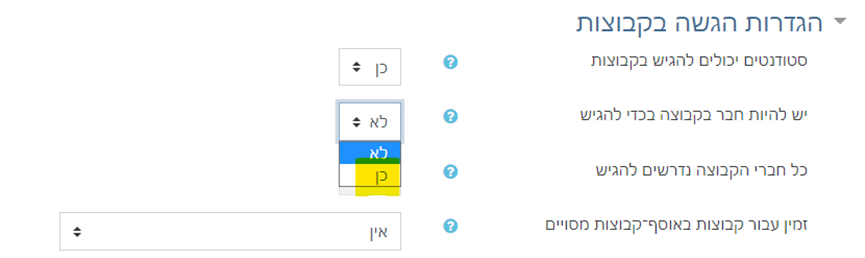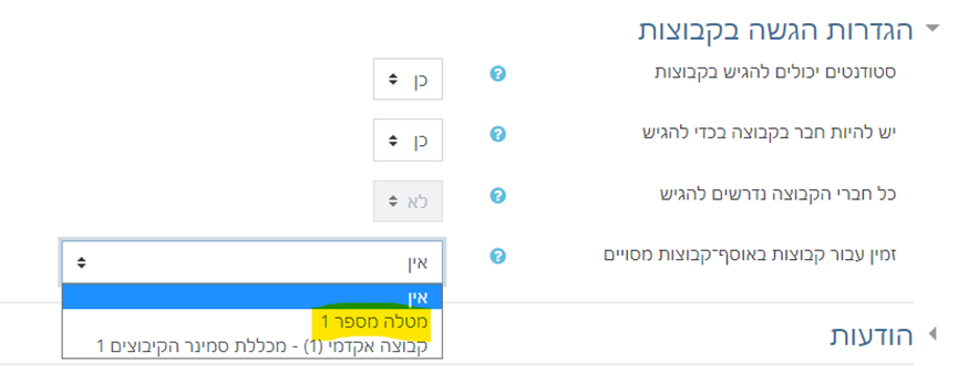 ומול "סטודנטים יכולים להגיש בקבוצות" בוחרים "כן".