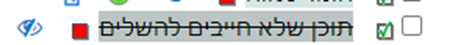 - הסתרת פעילות: הערה: כאשר בוחרים להציג את כל פעילויות הקורס לא ניתן למחוק פעילות מהרשימה. על מנת שהפעילות לא תוצג לסטודנט יש להסתיר אותה (לחיצה על אייקון העין). הפעילות המוסתרת לא תהיה חלק מרשימת הסימון של התלמיד