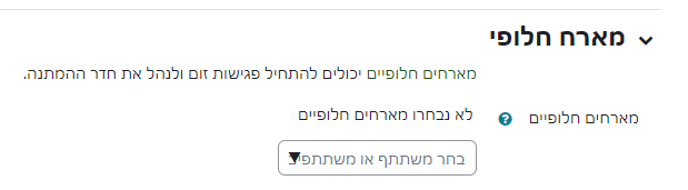 בחלונית מארחים חלופיים ניתן להוסיף שמות ממשתתפי הקורס, או להקליד את שמם. ניתן להוסיף מספר מארחים חלופיים.