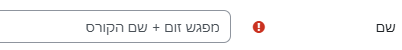 כאשר יוצרים את שם המפגש מומלץ שהשפ יורכב מסוג הפעילות (זום, מפגש זום קבוע או שם אחר), ואחר שם מקוצר של הקורס. שם הקורס יסייע למרצים ולסטודנטים לאתר את ההקלטה בין ההקלטות השונות שלהם בשרת ההקלטות.