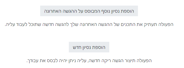 - במידה וניתנה אפשרות לניסיון נוסף כאשר התלמיד יכנס למטלה יוצגו לו שתי כפתורים: