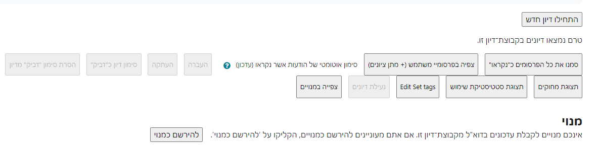 הדיונים שהתווספו לקבוצות הדיון מופיעים כרשימה: