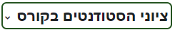- לחיצה על לשונית "ציונים" בתפריט הקורס. (יש לוודא שהקטגוריה שנבחרה היא ציוני הסטודנטים בקורס)