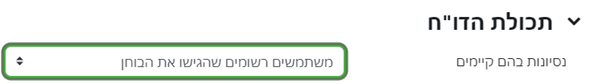 - בדף 'תוצאות' באזור "תכולת הדו"ח" יש לבחור "משתמשים רשומים שהגישו את הבוחן".
