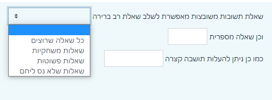 שאלת תשובות משובצות מאפשרת להוסיף לשאלה אחת מספר מספר סוגי שאלות בשאלה אחת.