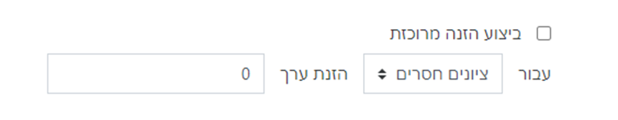 - קיימת גם אפשרות להכניס ציונים באופן מרוכז – על ידי בחירה בתיבת "ביצוע הזנה מרוכזת". ניתן לבחור העם לעשות זאת רק עבור ציונים חסרים או בעבור כל הציונים. להזין את הערך המבוקש ואחר ללחוץ על שמירה.