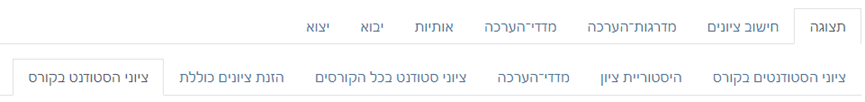 ציוני סטודנט בכל הקורסים: לשונית זו מאפשרת לראות את ממוצע הציונים של הסטודנט בכל הקורסים בהם הוא משתתף.