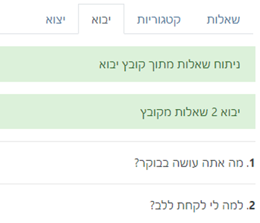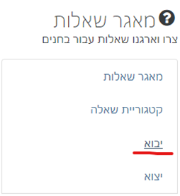 • תחת הטור "מאגר השאלות" בוחרים יבוא